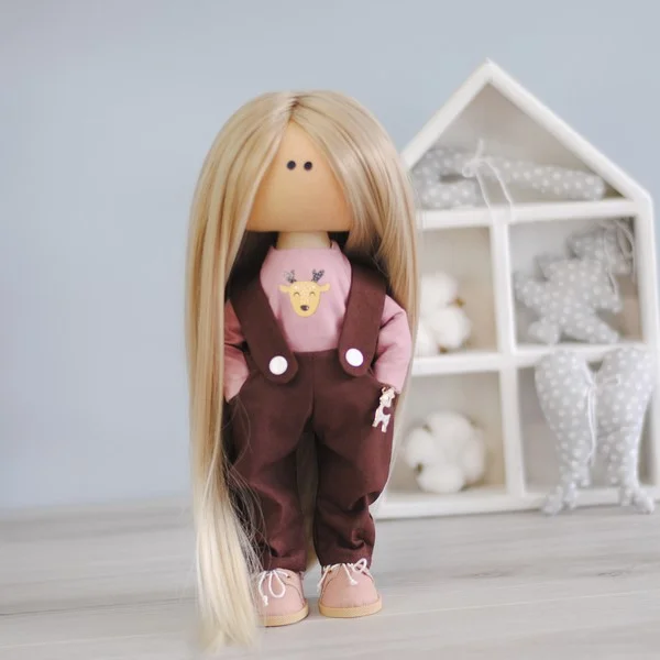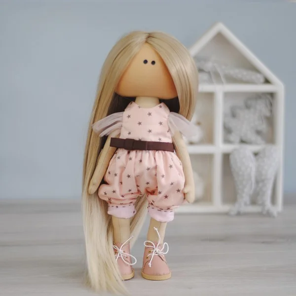 Разве ваша дочь, племянница, сестра, лучшая подруга и они перестали играть со своими любимыми куклами? Может быть, у кукол нет одежды, которую можно снять, или у куклы нет нового гардероба? У меня есть решение. Ура! Кукла с гардеробом одежды. В комплект входит платье с длинным рукавом с многослойной юбкой (кружево, основная ткань и тюль), комбинезон с карманами, комбинезон с коротким рукавом. Длинна волос – 30 см. Очень длинные волосы. Сердечко в подарок.